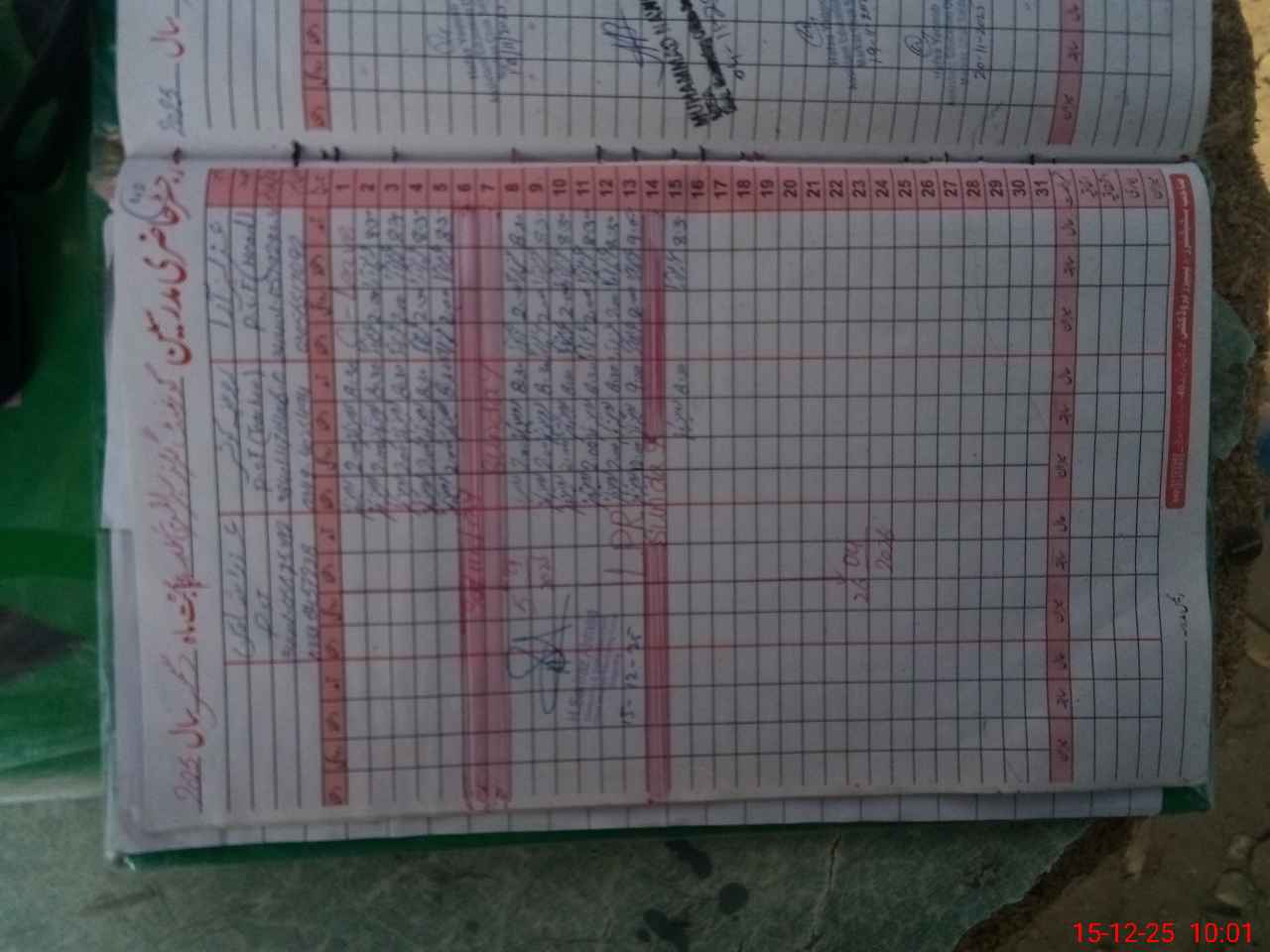 | CNIC | Full Name | Designation | R/C | Absence During Last Calender Month |