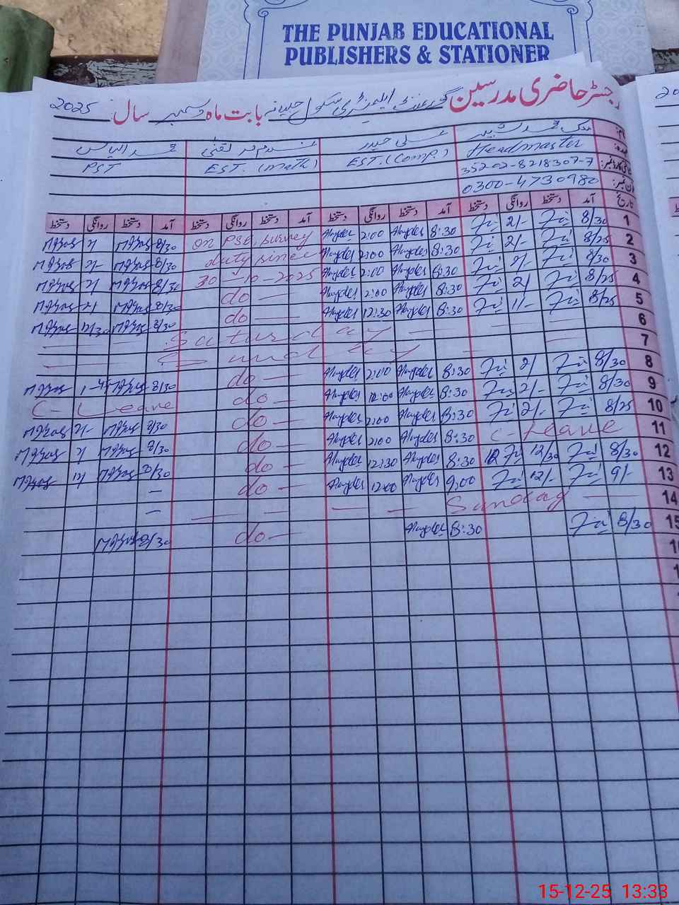 | CNIC | Full Name | Designation | R/C | Absence During Last Calender Month |