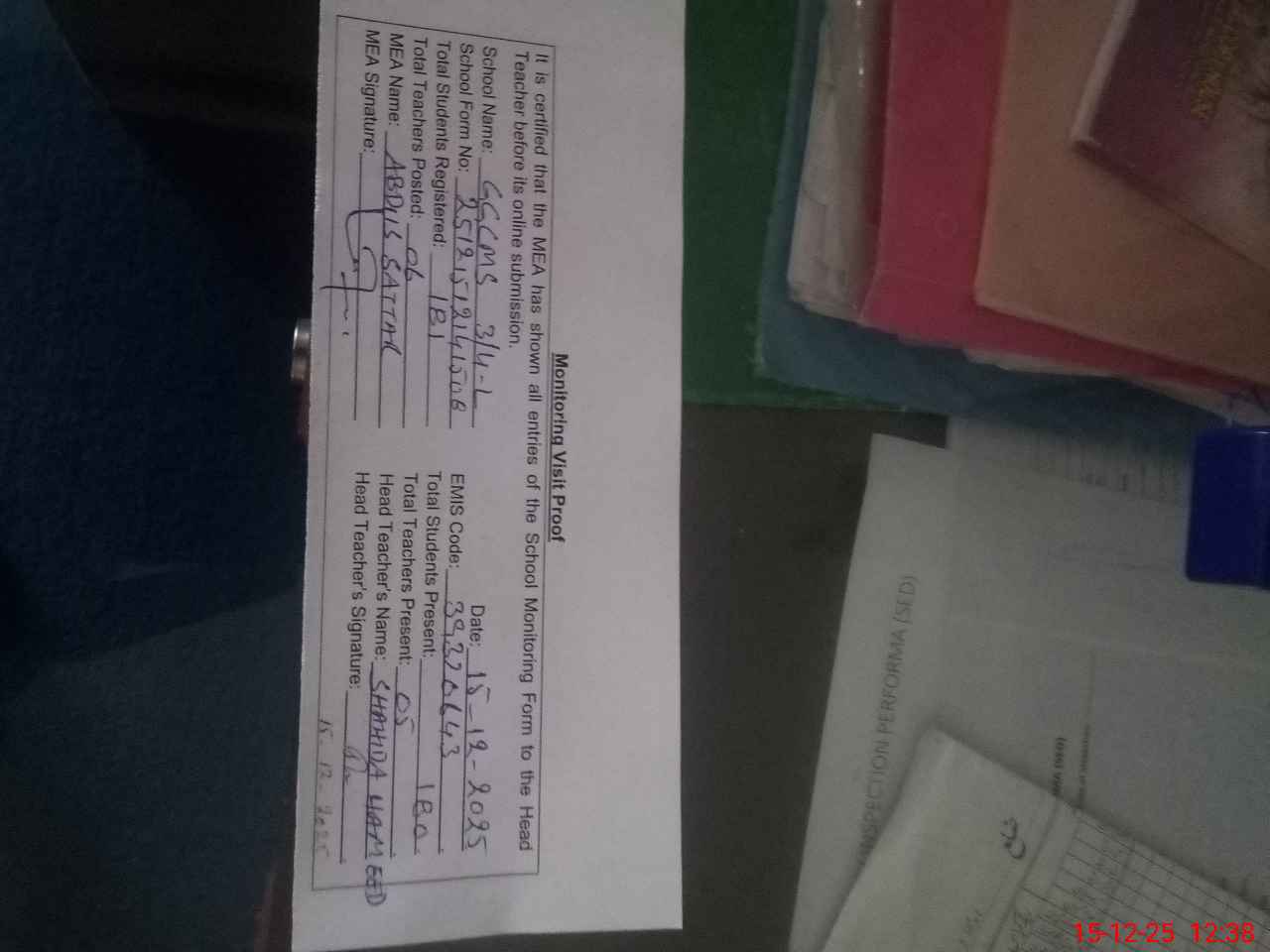 | EMIS Code: 39320643 | Name of School: GGCMS CHAK NO 3/4-L | |||