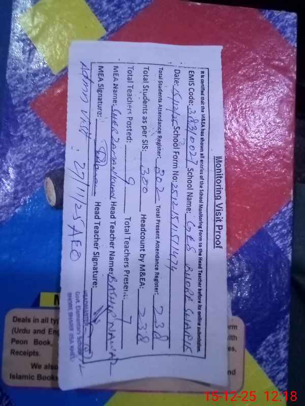 | EMIS Code: 38310027 | Name of School: GES BHORE SHARIF | |||