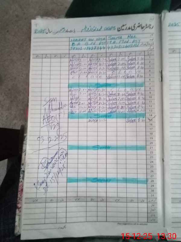 | Name: As**** Fi**** Designation: (School Headmaster's/Headmistress's) PST Phone/Cell Number: 03**** |