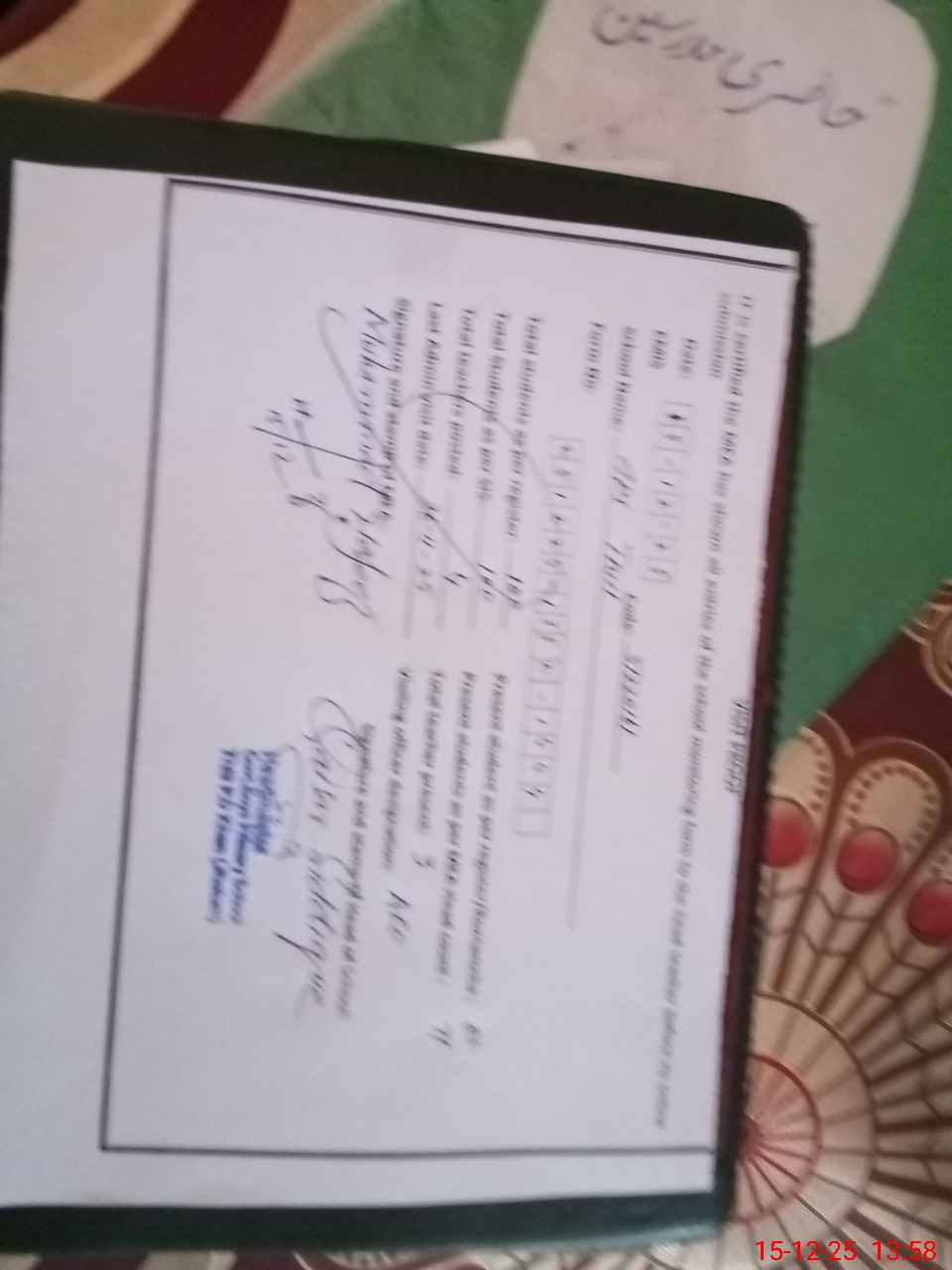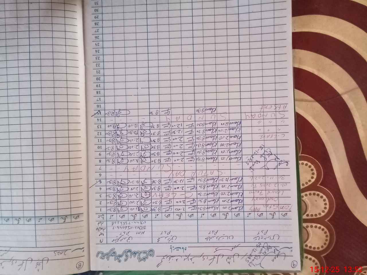 | Remarks (Use Separate Page if Required): PST Teacher Shahid Abbas on leave 29-11-2025 next he applied leave but his leave rejected from higher authority but he not follow the instructions of higher authorities he not come to school after rejected leave from 1-12-25 to till date 15-12-25 he was absent from school picture of teacher attendance register is available. | |||||