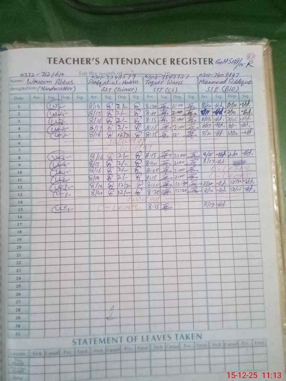 | Name: Mu**** Ab**** Designation: (School Headmaster's/Headmistress's) Headmaster Phone/Cell Number: 03**** |