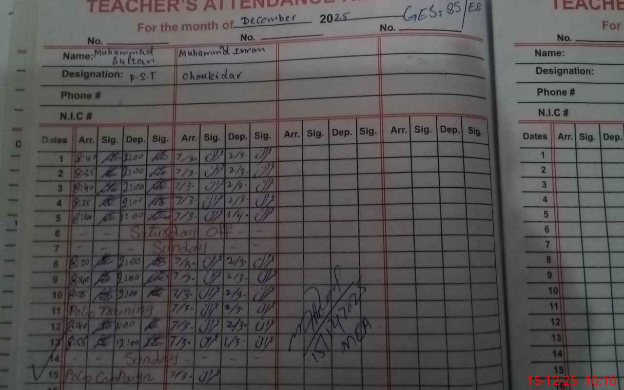 | Name: Ir**** Al**** Designation: (School Headmaster's/Headmistress's) SST (GENERAL) Phone/Cell Number: 03**** |