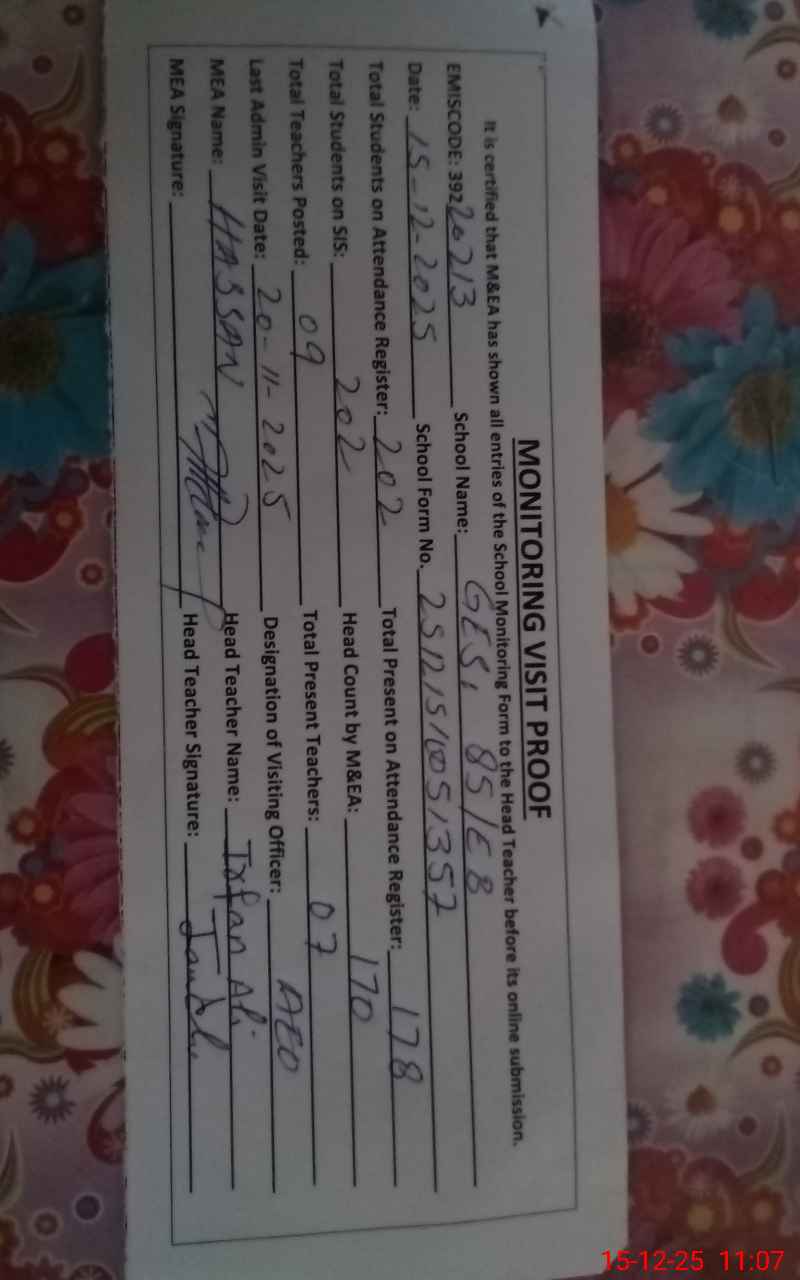 | Certified that this School was Inspected by the Undersigned MEA/DMO Today and the Information Stated Above is as Per Record. | |||||