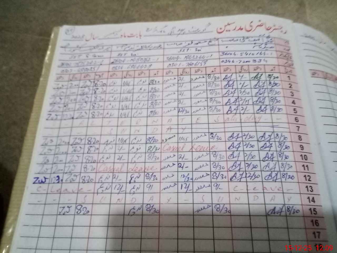 | CNIC | Full Name | Designation | R/C | Absence During Last Calender Month |