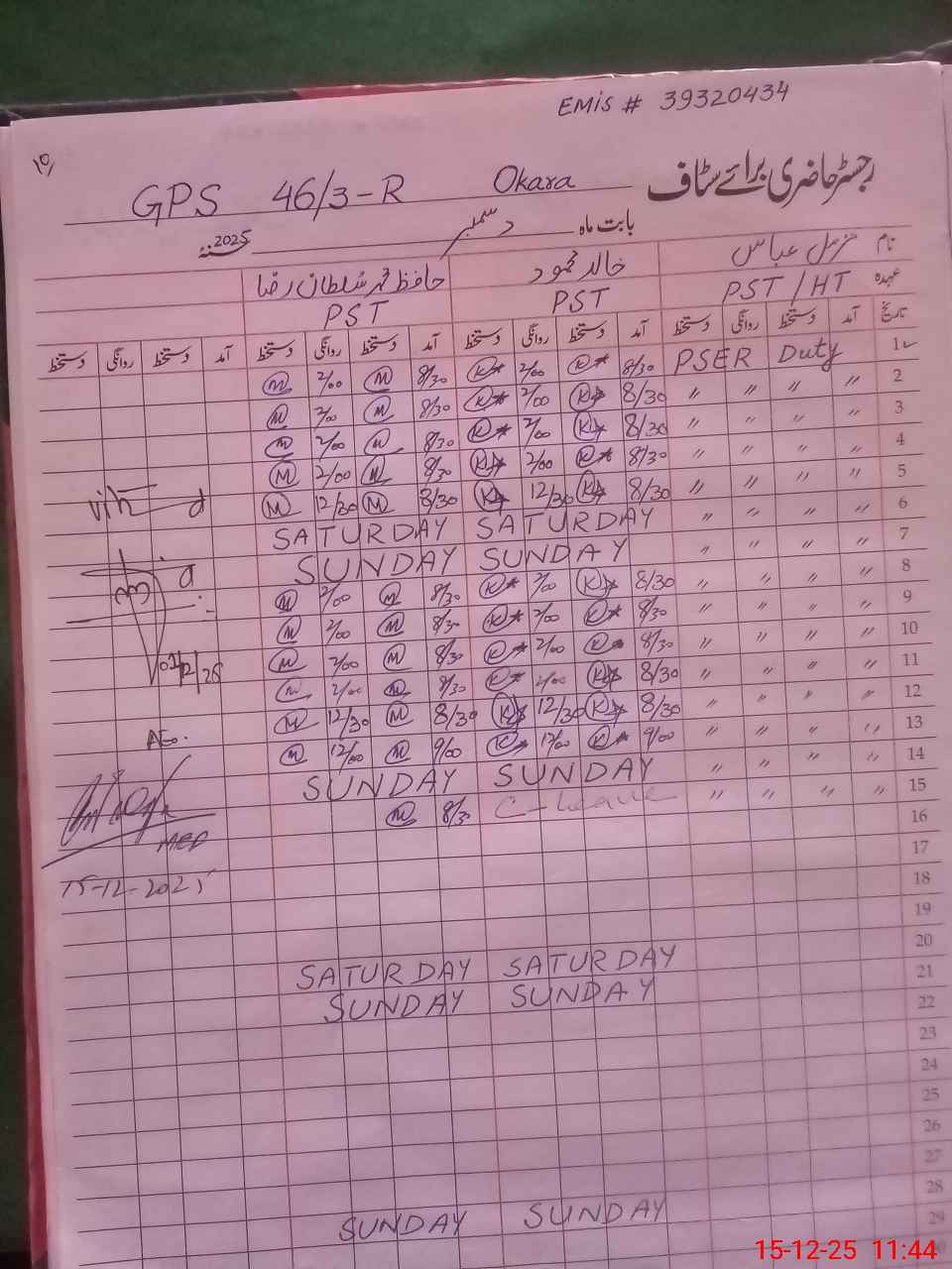 | Name: Mu**** Ab**** Designation: (School Headmaster's/Headmistress's) PST Phone/Cell Number: 03**** |