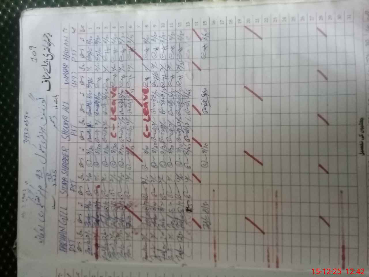 | CNIC | Full Name | Designation | R/C | Absence During Last Calender Month |