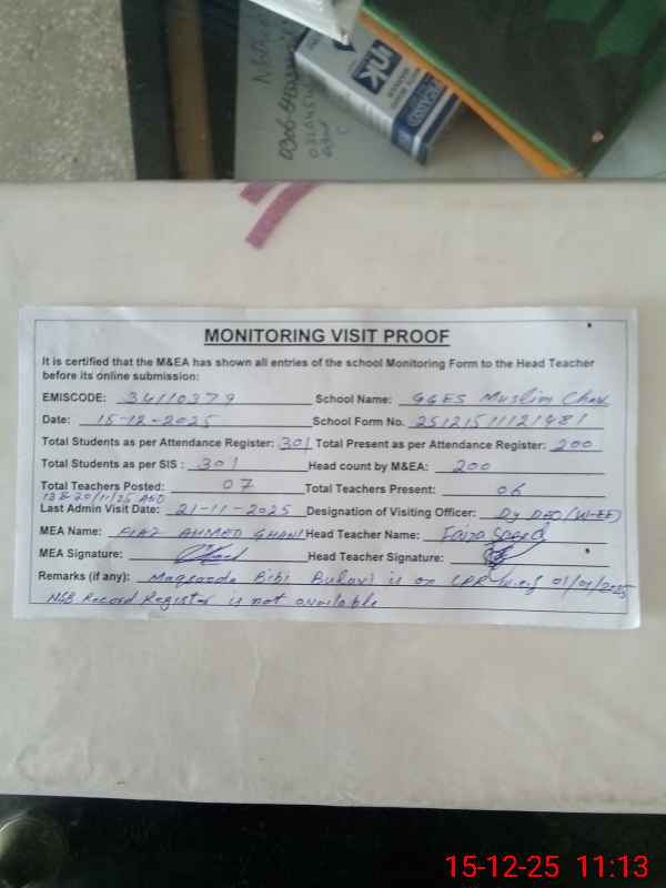 | EMIS Code: 34110379 | Name of School: GGES MUSLIM CHAK | |||