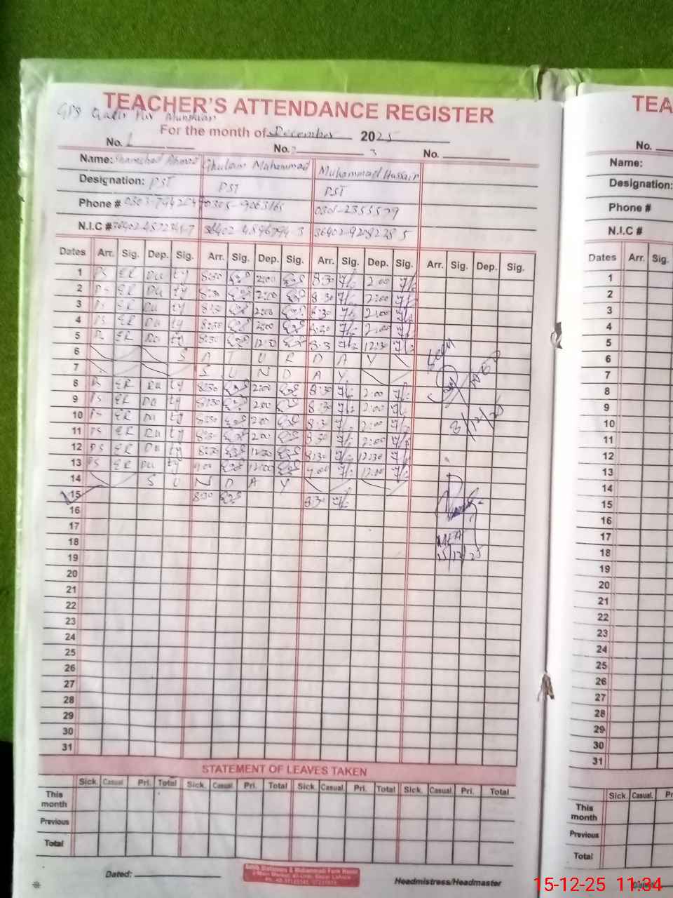 | Name: SH**** AH**** Designation: (School Headmaster's/Headmistress's) PST Phone/Cell Number: 03**** |