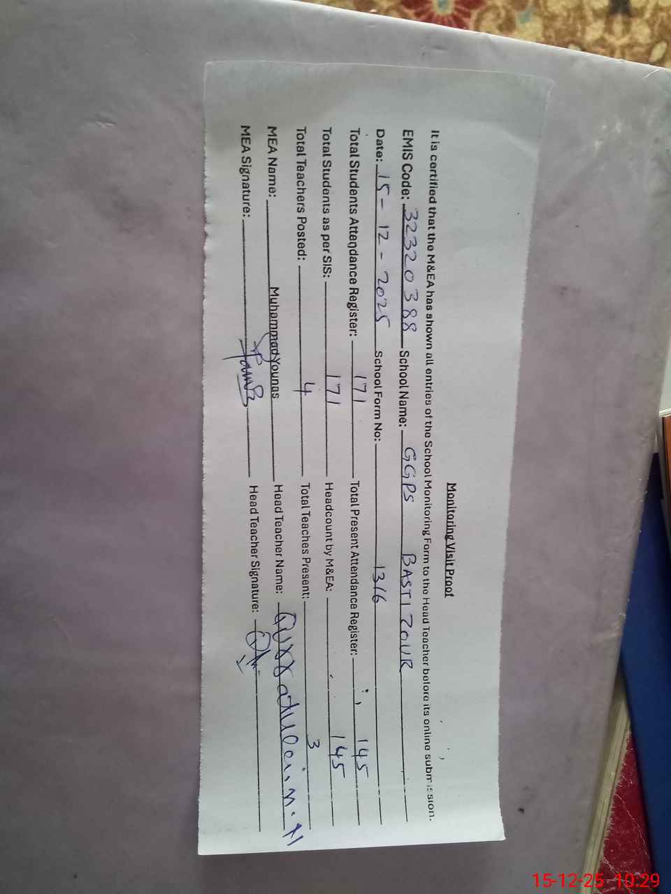 | EMIS Code: 32320388 | Name of School: GGPS BASTI ZOUR | |||