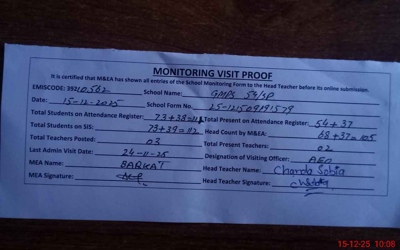 | EMIS Code: 39210562 | Name of School: GMPS 54/SP | |||