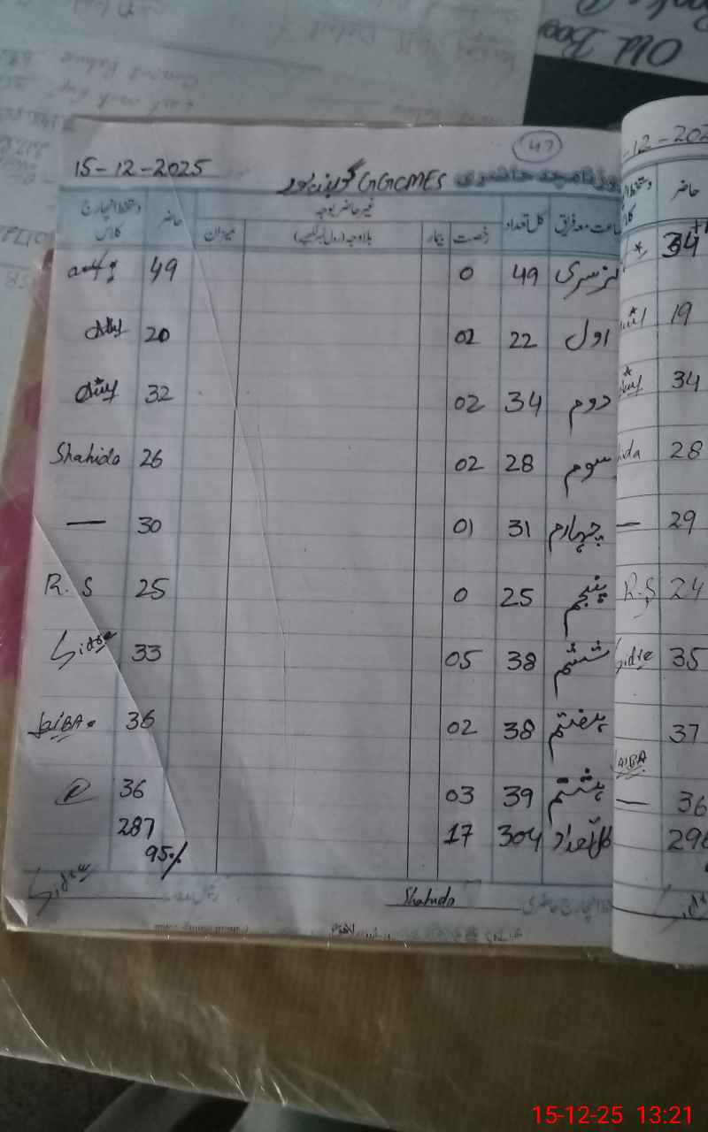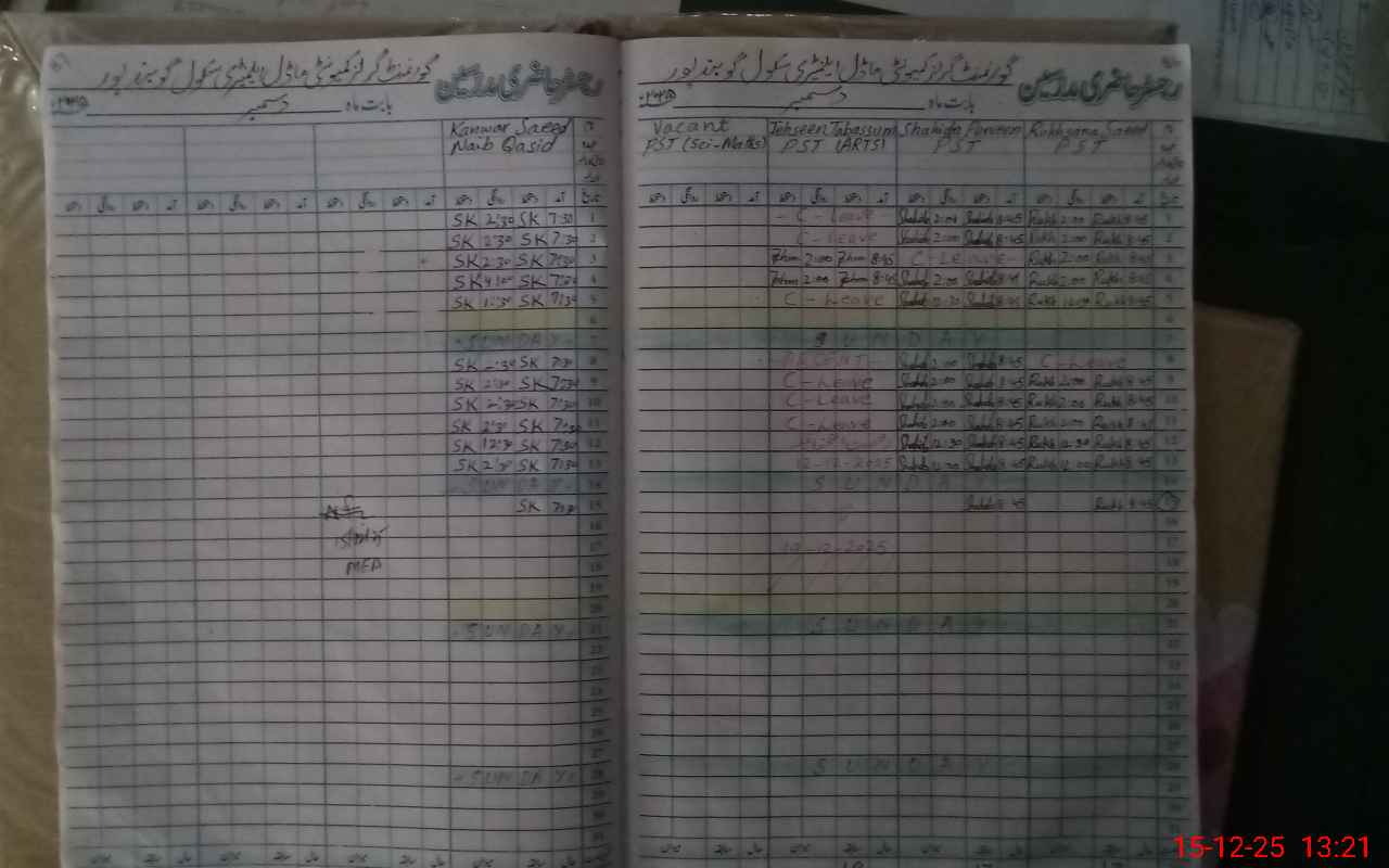 | CNIC | Full Name | Designation | R/C | Absence During Last Calender Month |