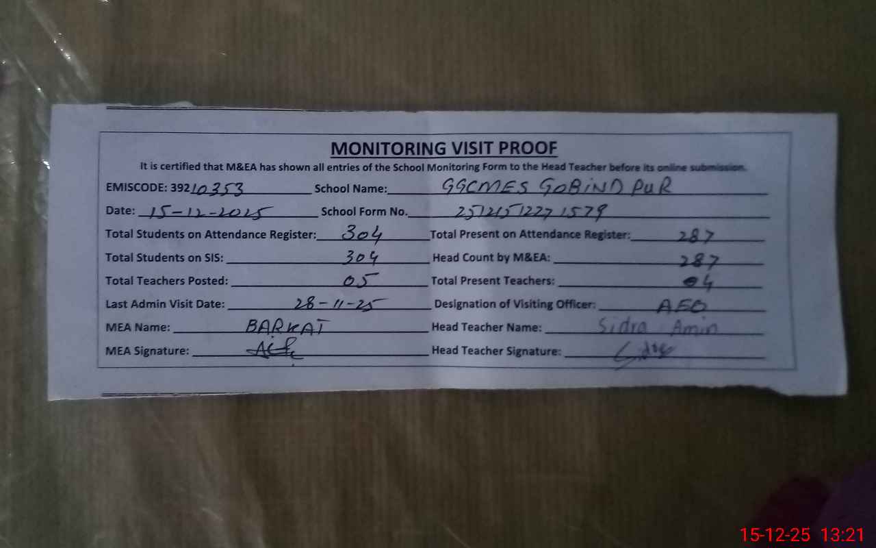 | EMIS Code: 39210353 | Name of School: GGCMES GOBIND PUR | |||