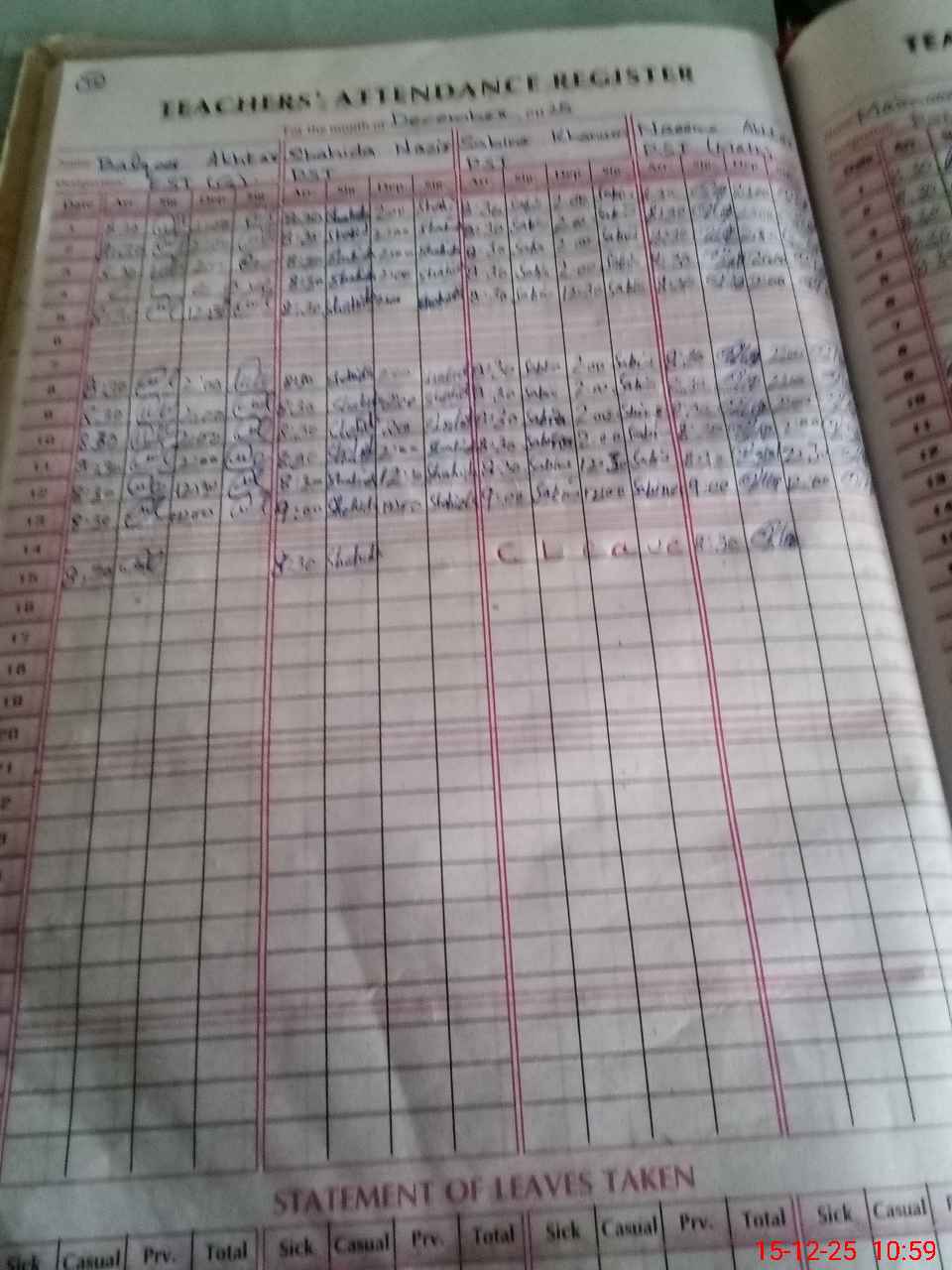 | CNIC | Full Name | Designation | R/C | Absence During Last Calender Month |