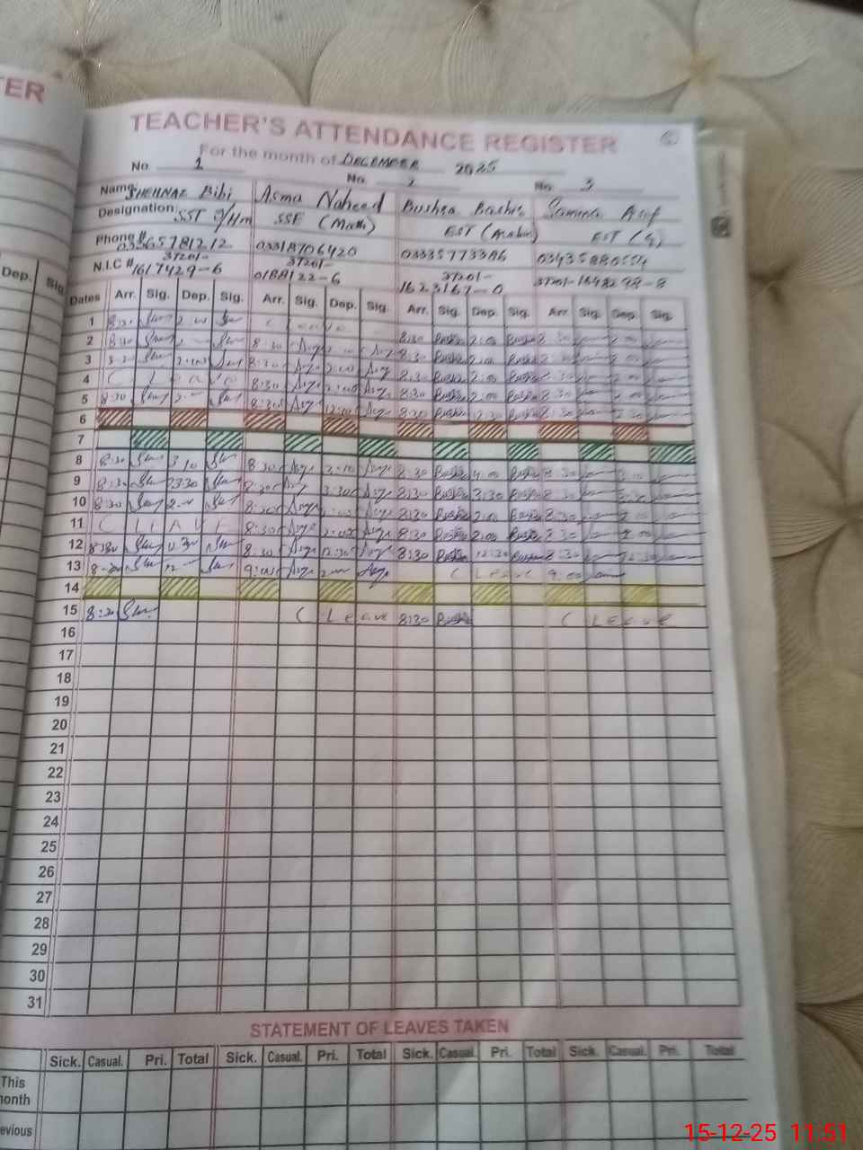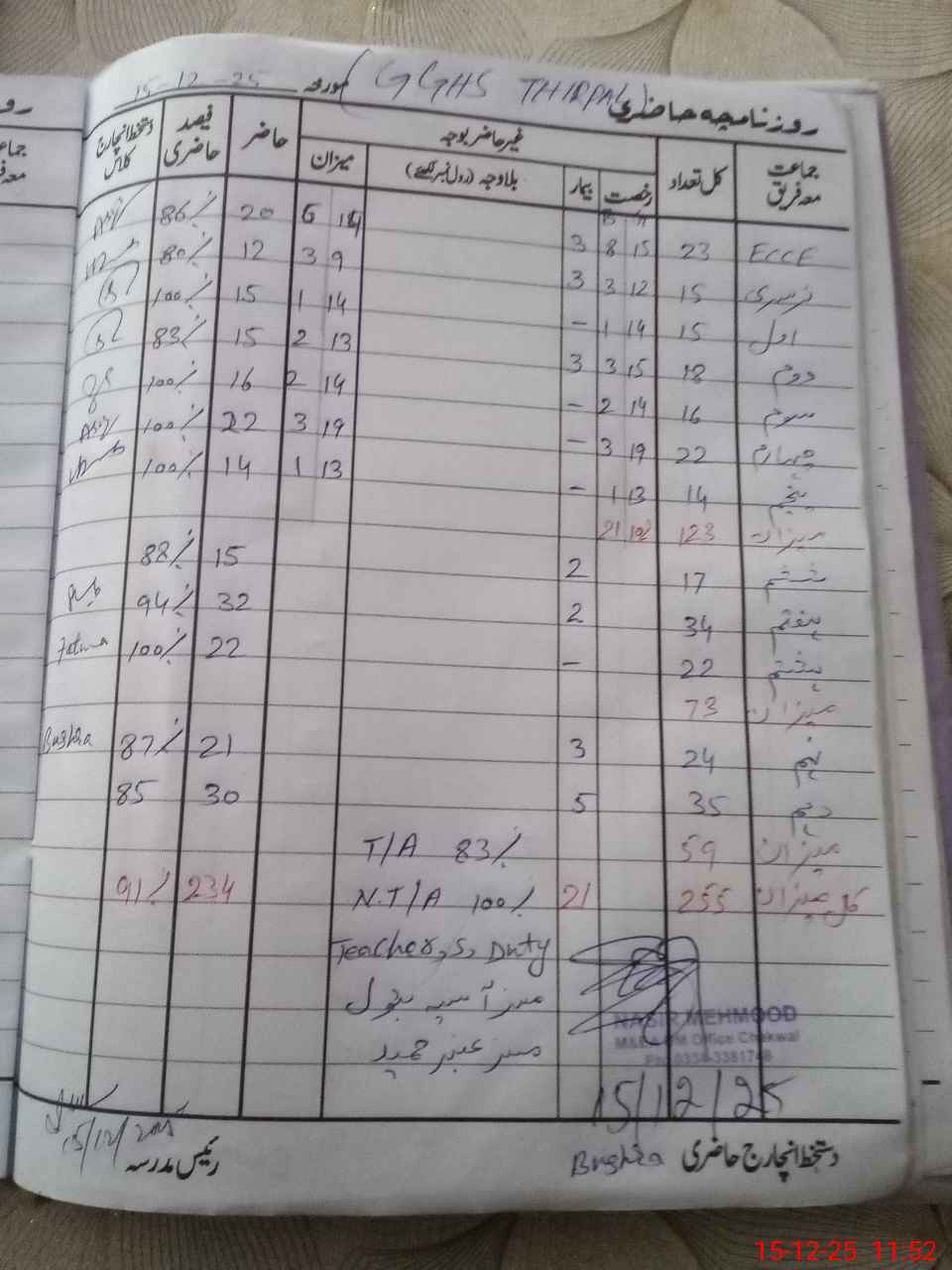 | Name: Sh**** BiBi Designation: (School Headmaster's/Headmistress's) HEADMISTRESS Phone/Cell Number: 03**** |