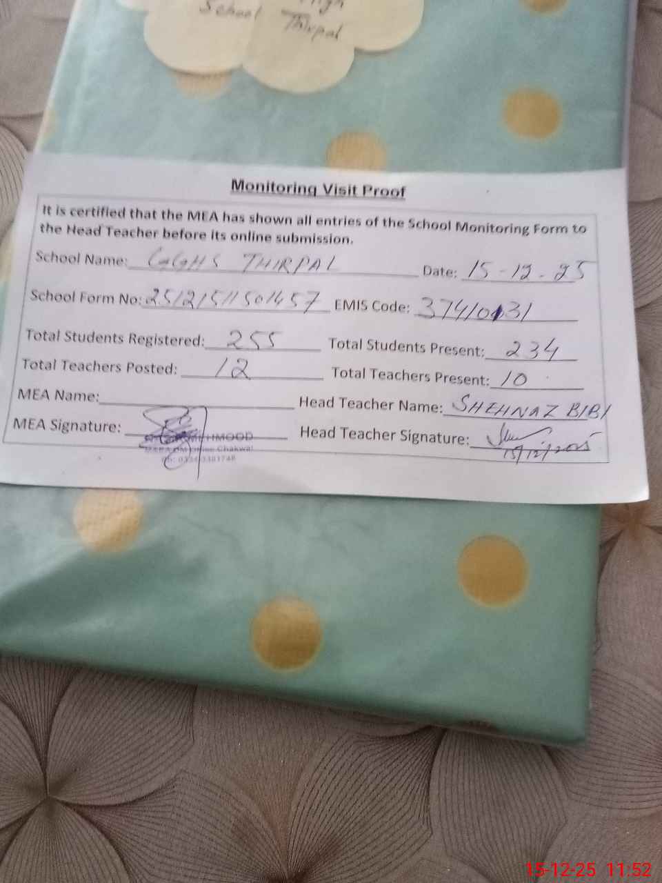 | EMIS Code: 37410131 | Name of School: GGHS THIRPAL | |||