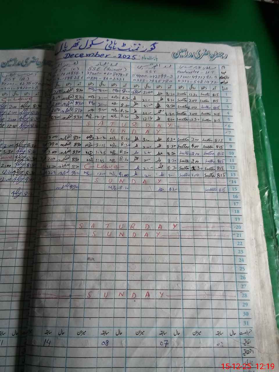 | Name: Su**** Ta**** Ab**** Designation: (School Headmaster's/Headmistress's) I/C HEADMASTER Phone/Cell Number: 03**** |