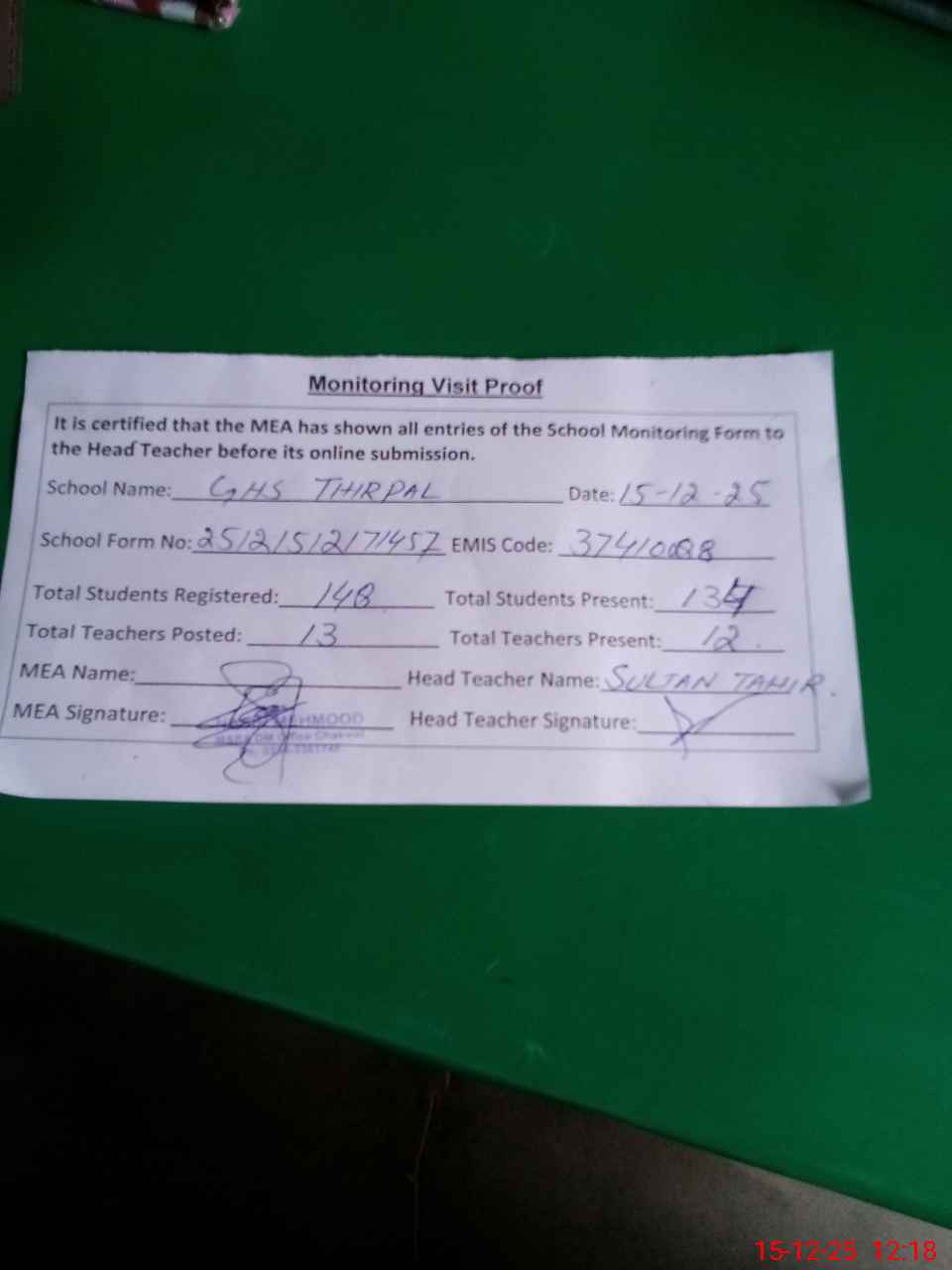 | EMIS Code: 37410088 | Name of School: GHS THIRPAL | |||