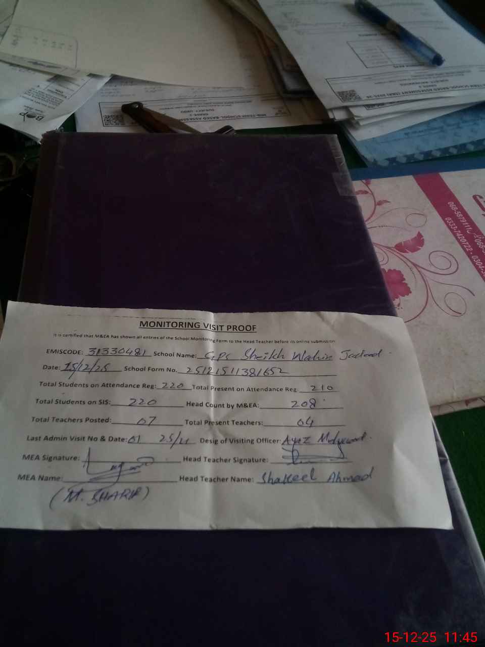 | EMIS Code: 31330481 | Name of School: GPS SHEIKH WAHIN JADEED | |||