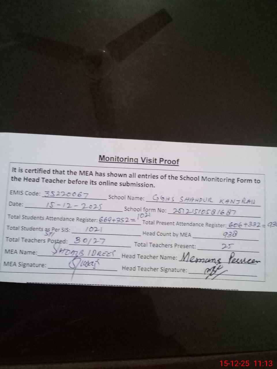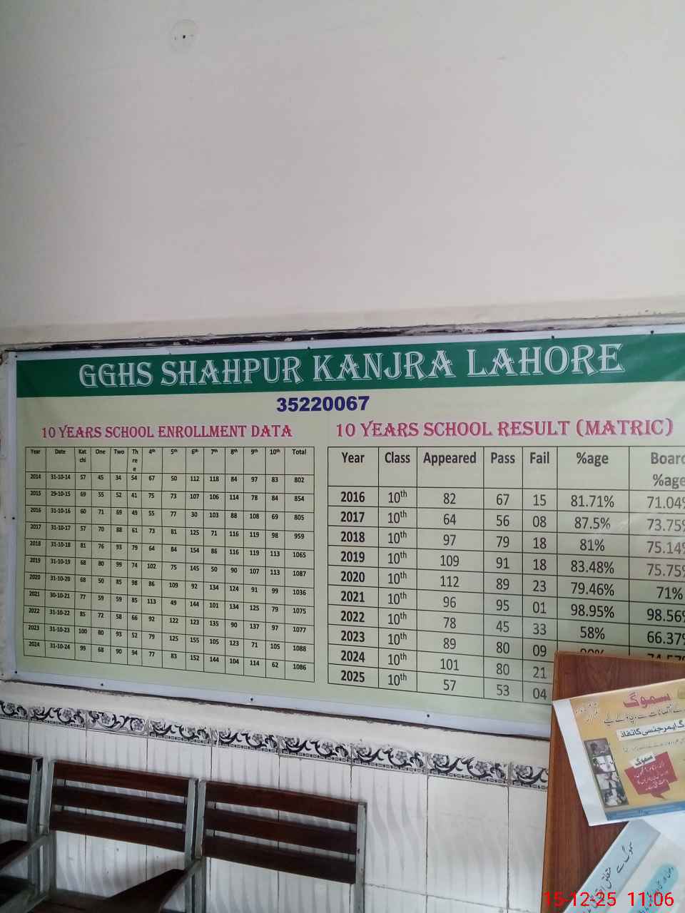 | EMIS Code: 35220067 | Name of School: GGHS SHAH PUR KANJRAN | |||