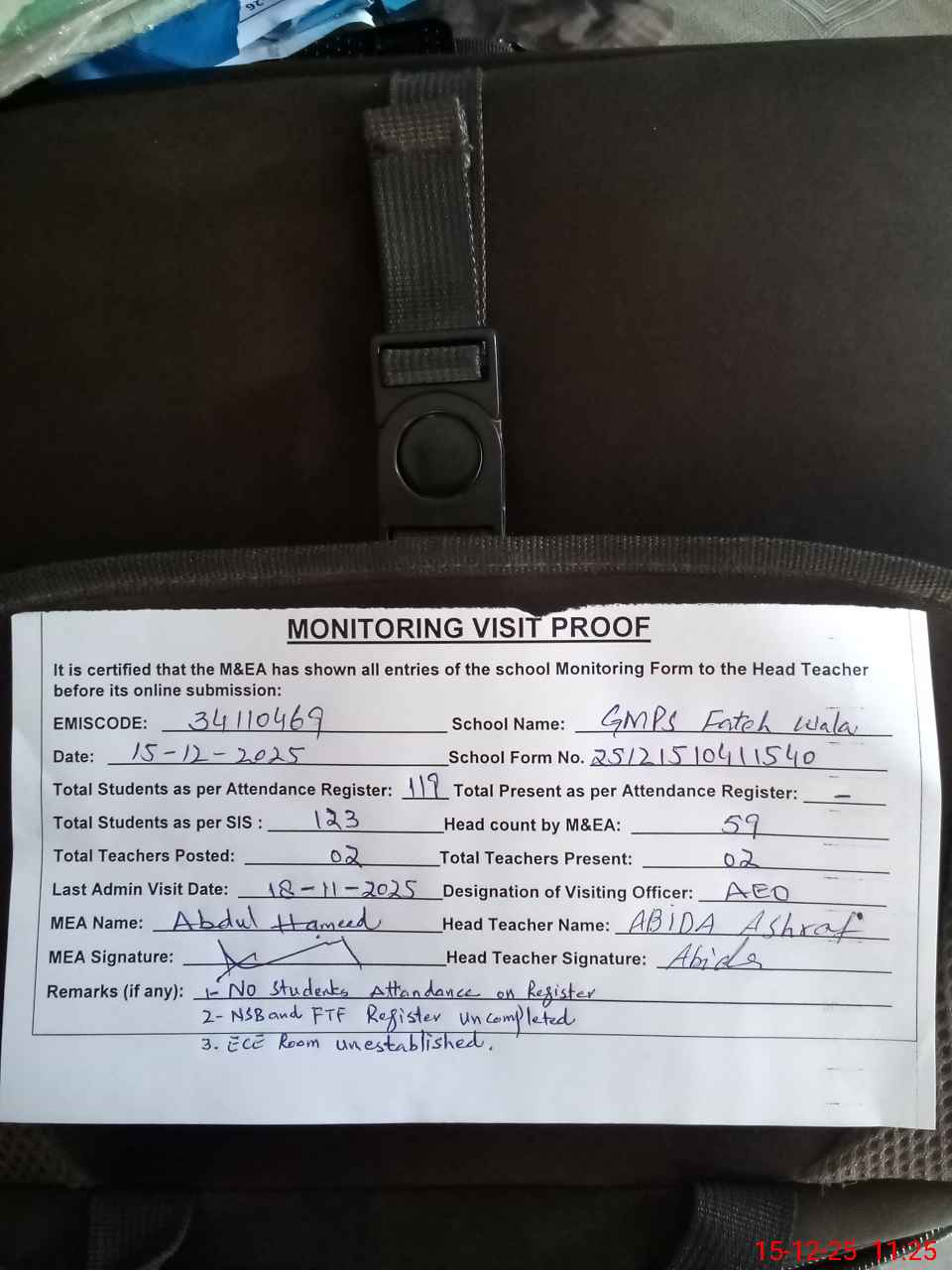 | EMIS Code: 34110469 | Name of School: GMPS FATEH WALA | |||