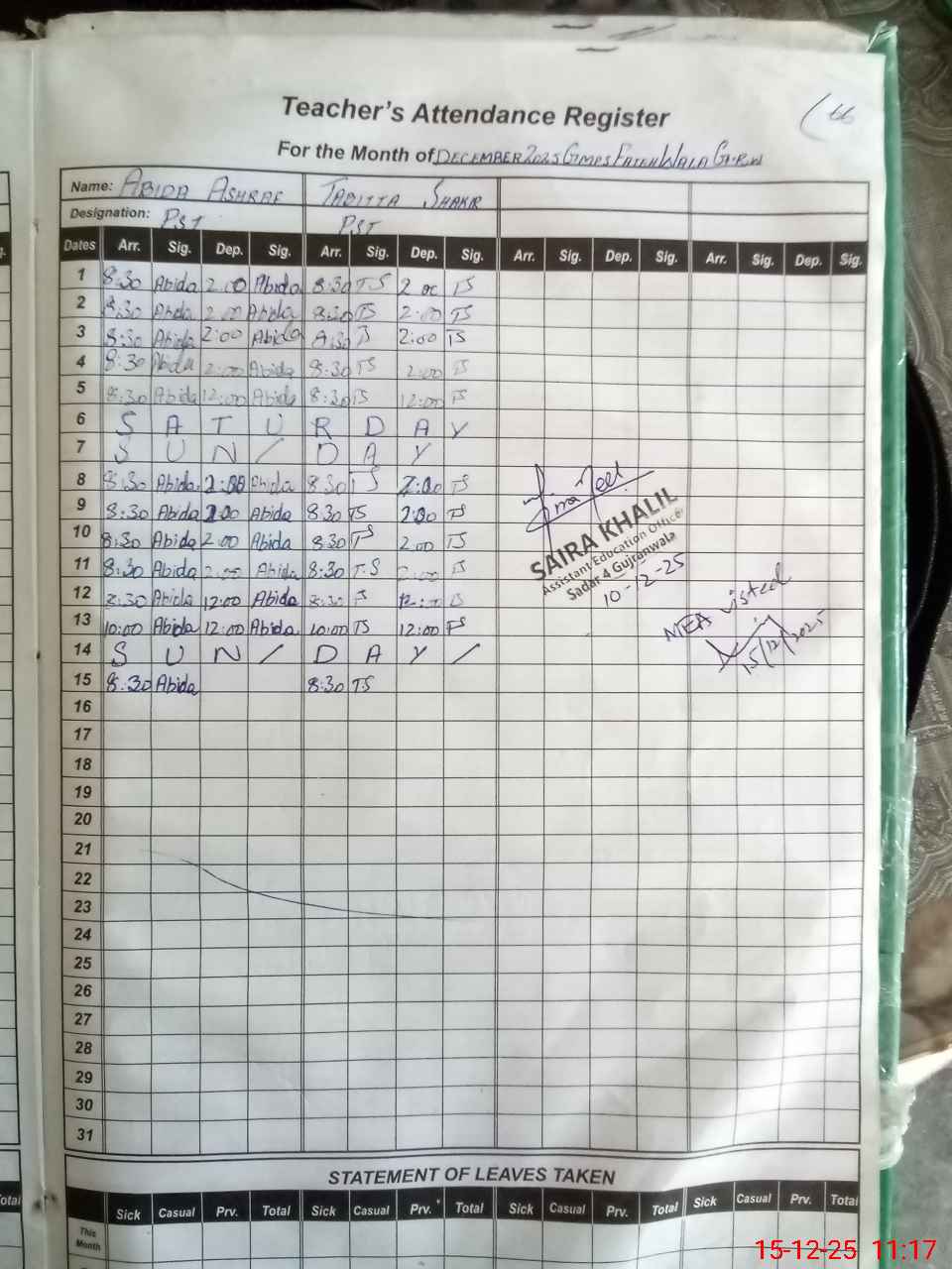| District: GUJRANWALA | Tehsil: GUJRANWALA SADAR | Markaz: GUJRANWALA SADAR 4 - FEMALE | Level: Primary | |