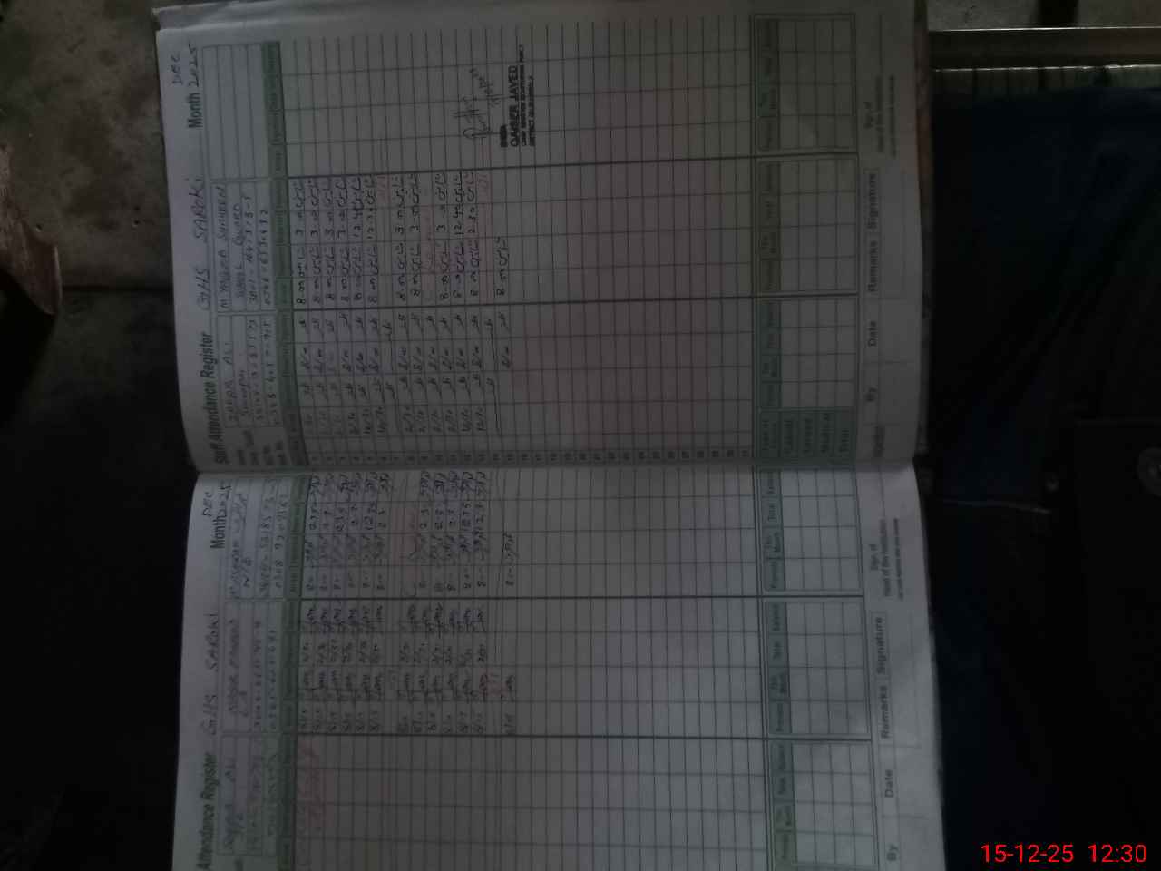 | CNIC | Full Name | Designation | R/C | Absence During Last Calender Month |