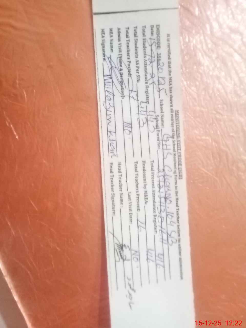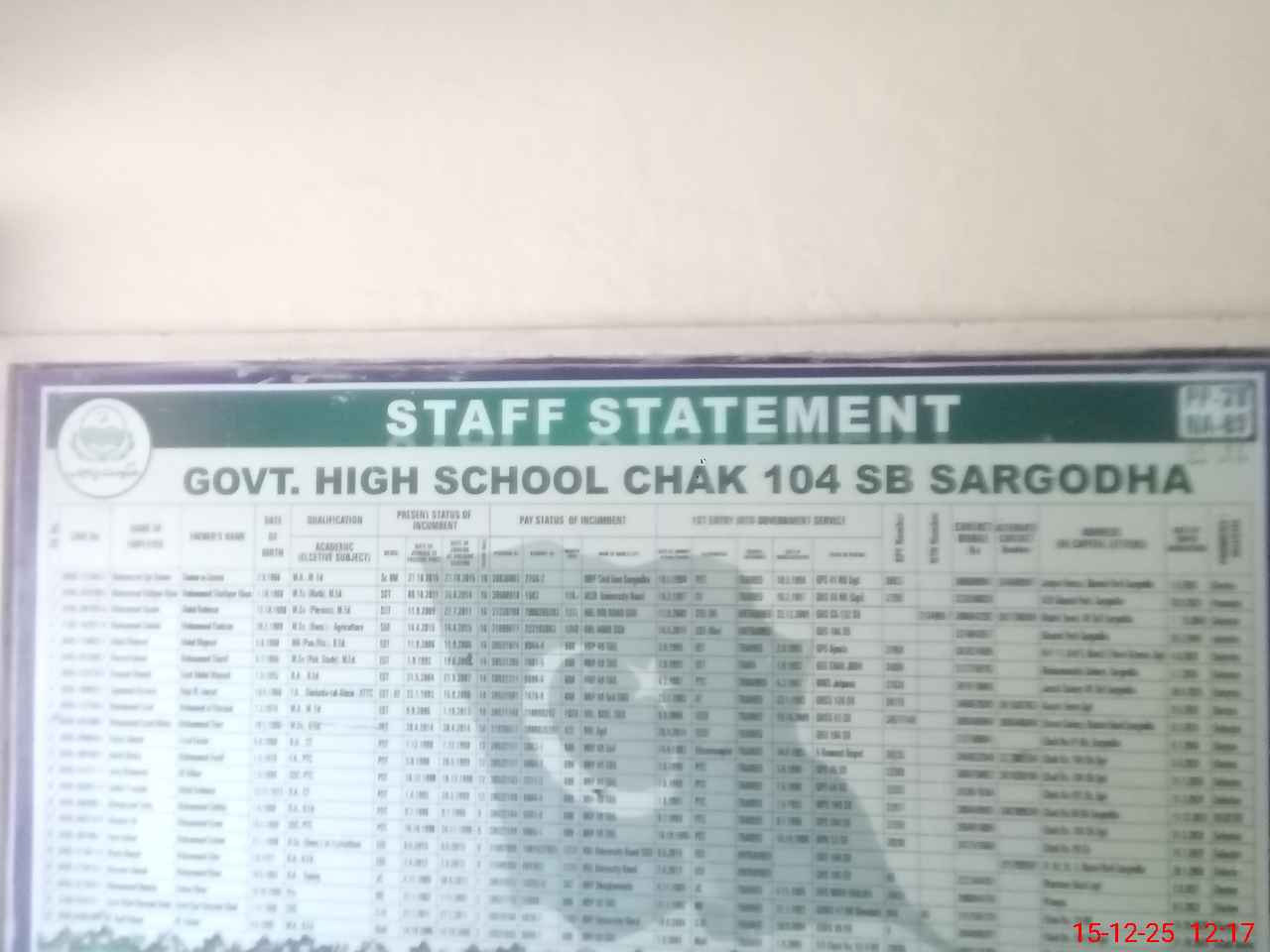 | EMIS Code: 38420125 | Name of School: GHS CHAK NO.104 SB | |||