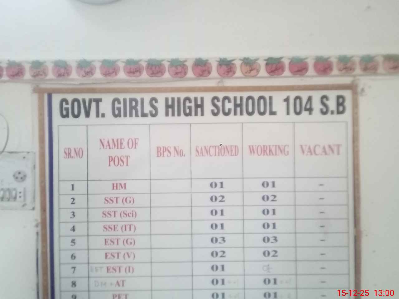 | EMIS Code: 38420204 | Name of School: GGHS CHAK NO.104 SB | |||