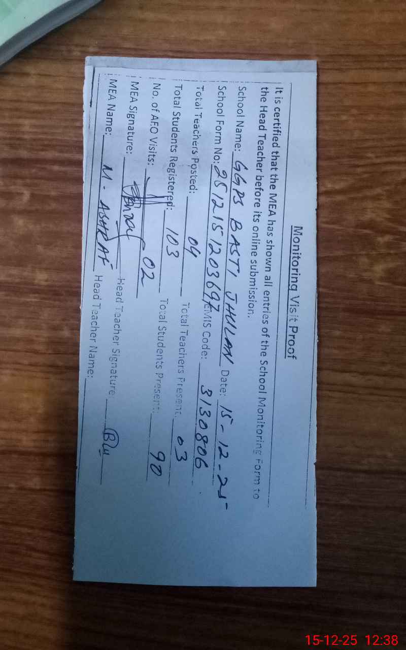 | EMIS Code: 31310806 | Name of School: GGPS BASTI JHULAN | |||