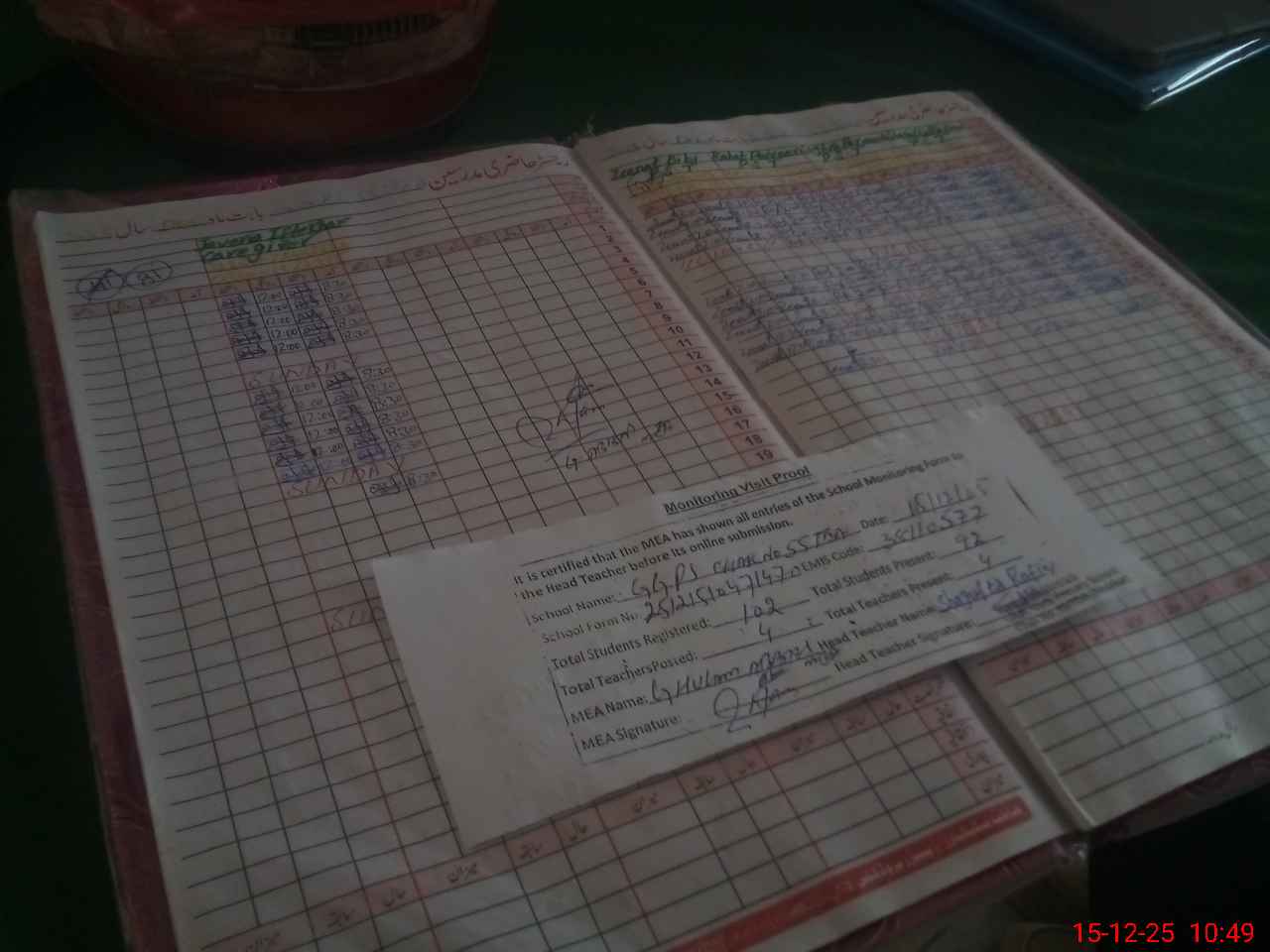 | Attendance Register | Head Teacher | MEA with School | Visit Proof |