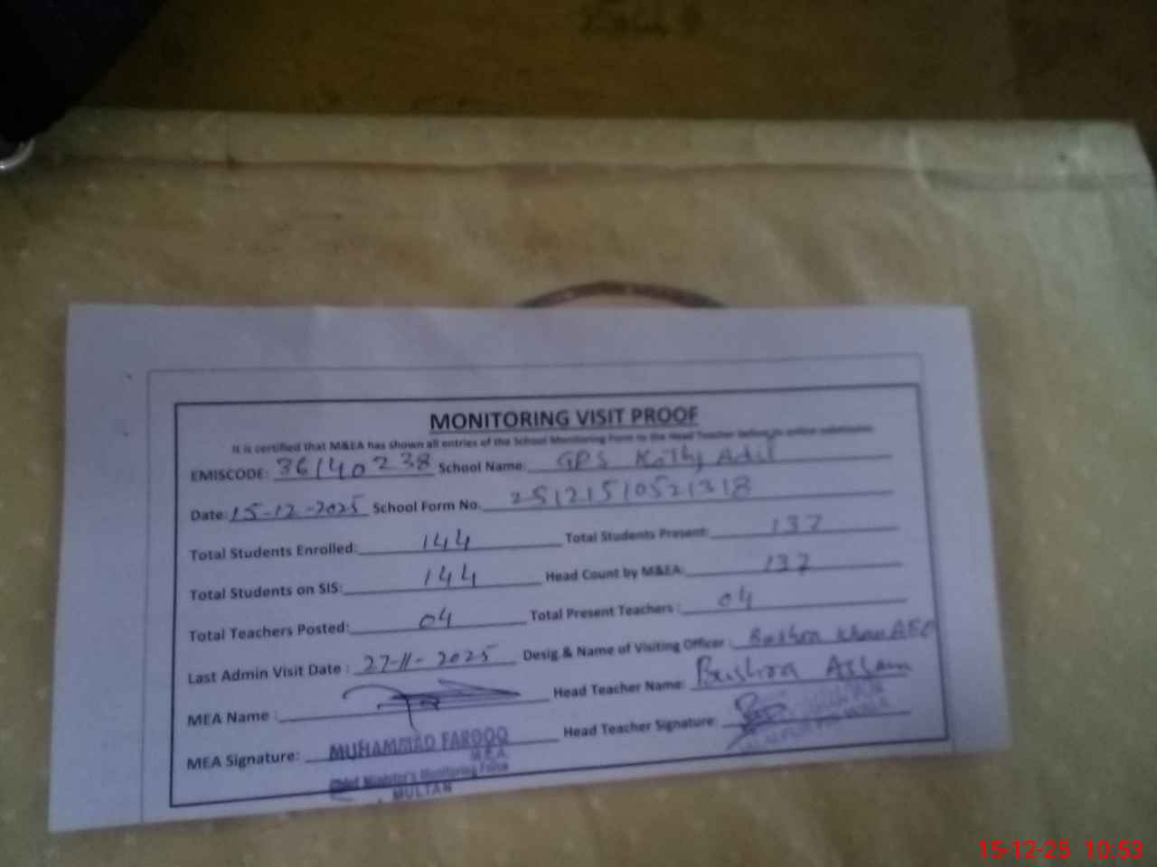 | EMIS Code: 36140238 | Name of School: GGPS KOTLI AADIL | |||