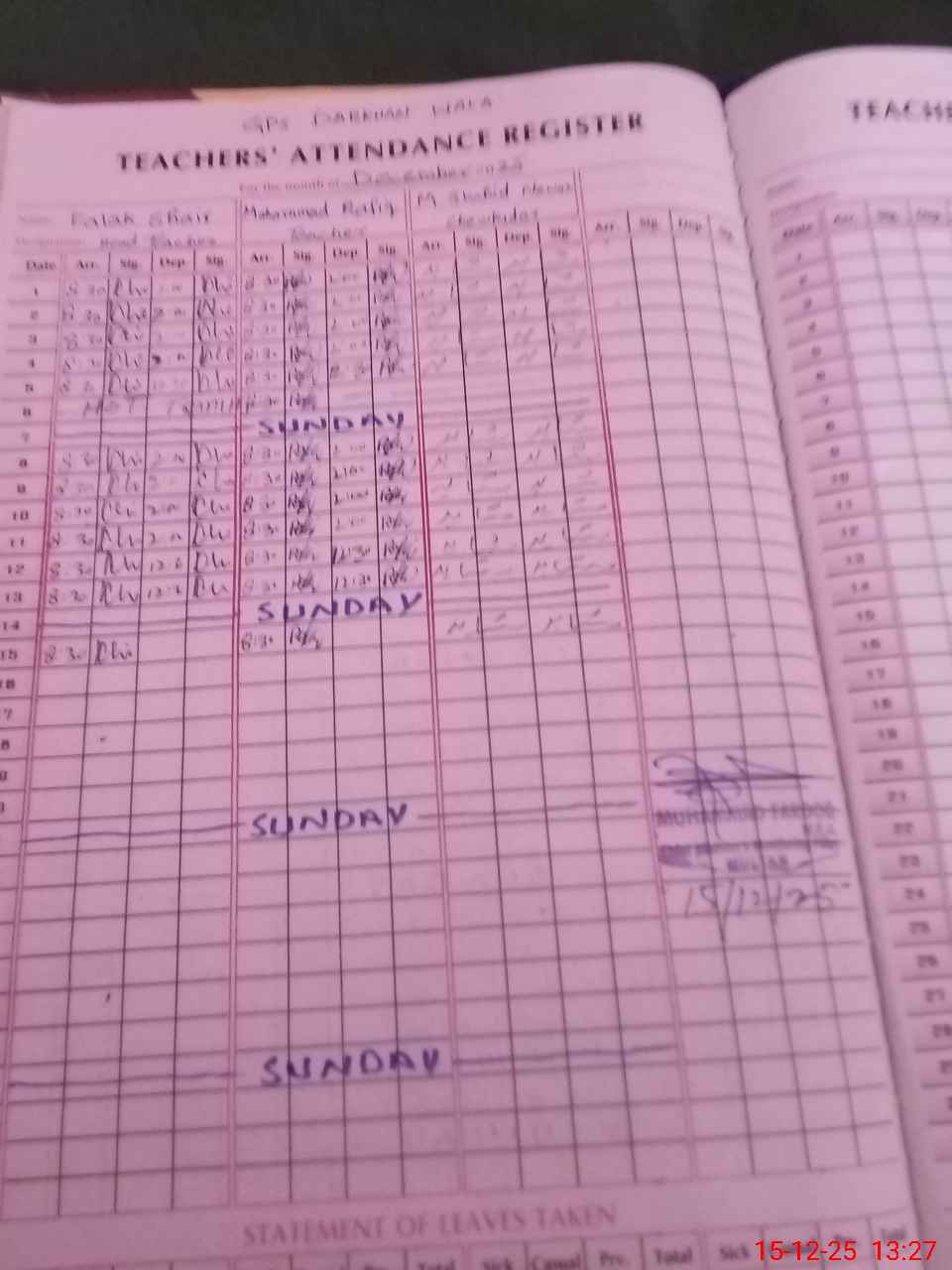 | Attendance Register | Head Teacher | MEA with School | Visit Proof |
