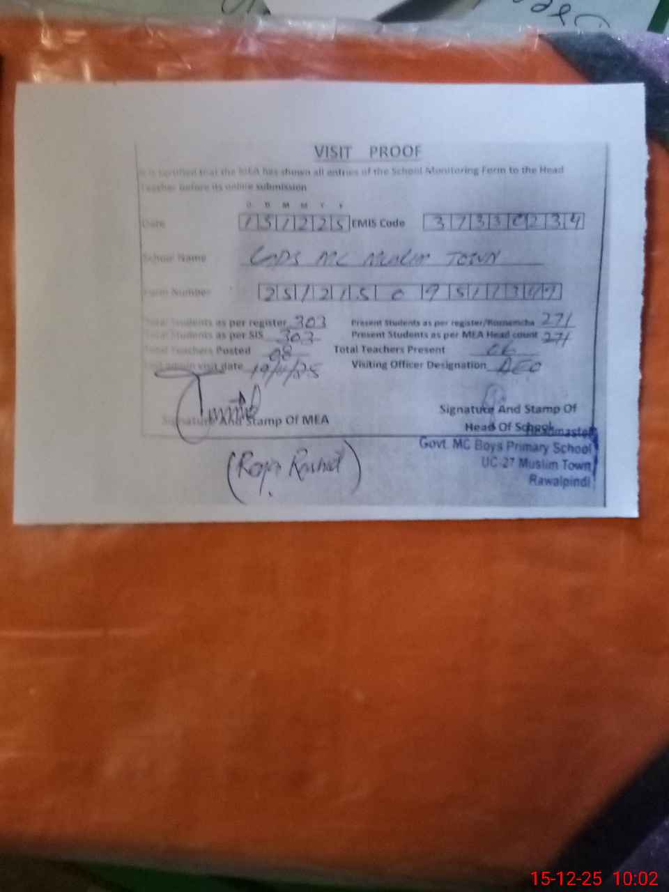 | Certified that this School was Inspected by the Undersigned MEA/DMO Today and the Information Stated Above is as Per Record. | |||||