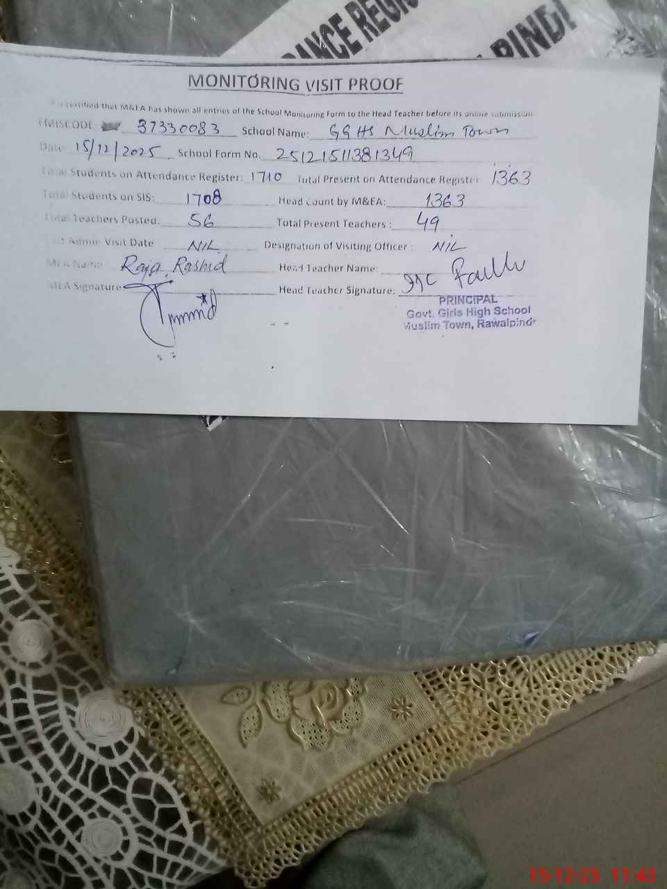 | Name: MR**** Fa**** Designation: (School Headmaster's/Headmistress's) Ic Incharge Phone/Cell Number: 03**** |