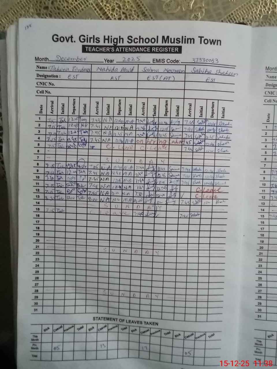 | 37**** | Re**** Kh**** | SST Arts | Regular | 0 | 0 | 0 | 0 | 0 | 0 | 0 | 0 | 0 | Absent (Un-Authorized) |