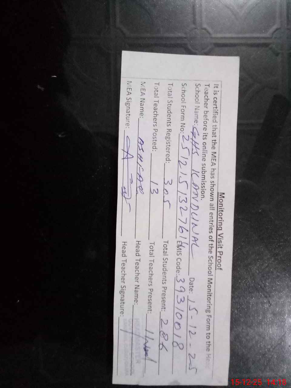 | EMIS Code: 39310018 | Name of School: GHS KANDUWAL SARAY | |||