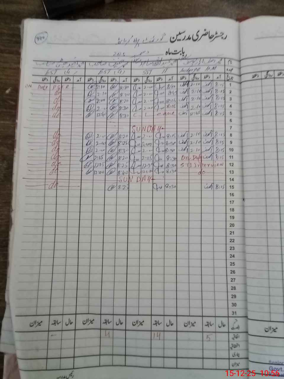 | CNIC | Full Name | Designation | R/C | Absence During Last Calender Month |