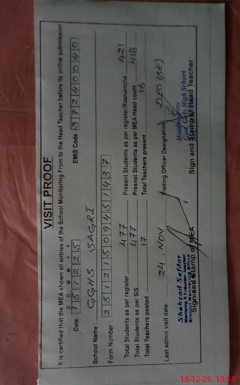 | EMIS Code: 37240040 | Name of School: GGHS SAGRI | |||