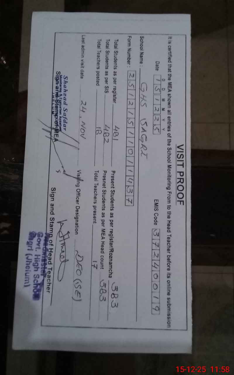| EMIS Code: 37240019 | Name of School: GHS SAGRI | |||