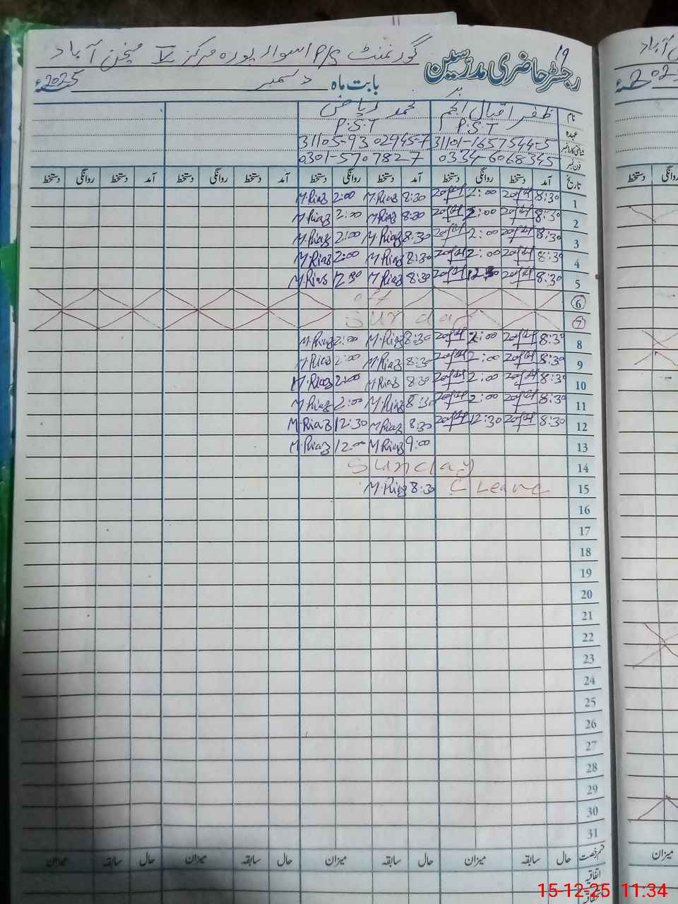 | Name: MU**** RI**** Designation: (School Headmaster's/Headmistress's) PST Phone/Cell Number: 03**** |