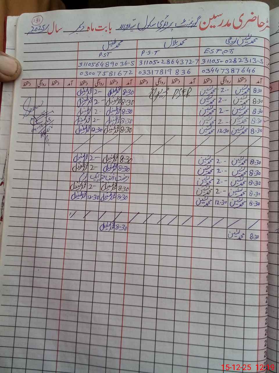 | Name: MU**** Ta**** Designation: (School Headmaster's/Headmistress's) P S T Phone/Cell Number: 03**** |