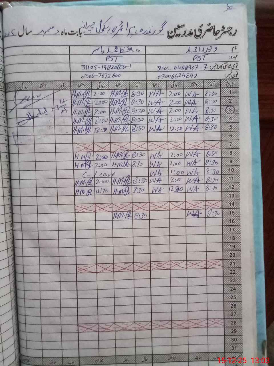 | Name: WA**** AH**** Designation: (School Headmaster's/Headmistress's) PST Phone/Cell Number: 03**** |