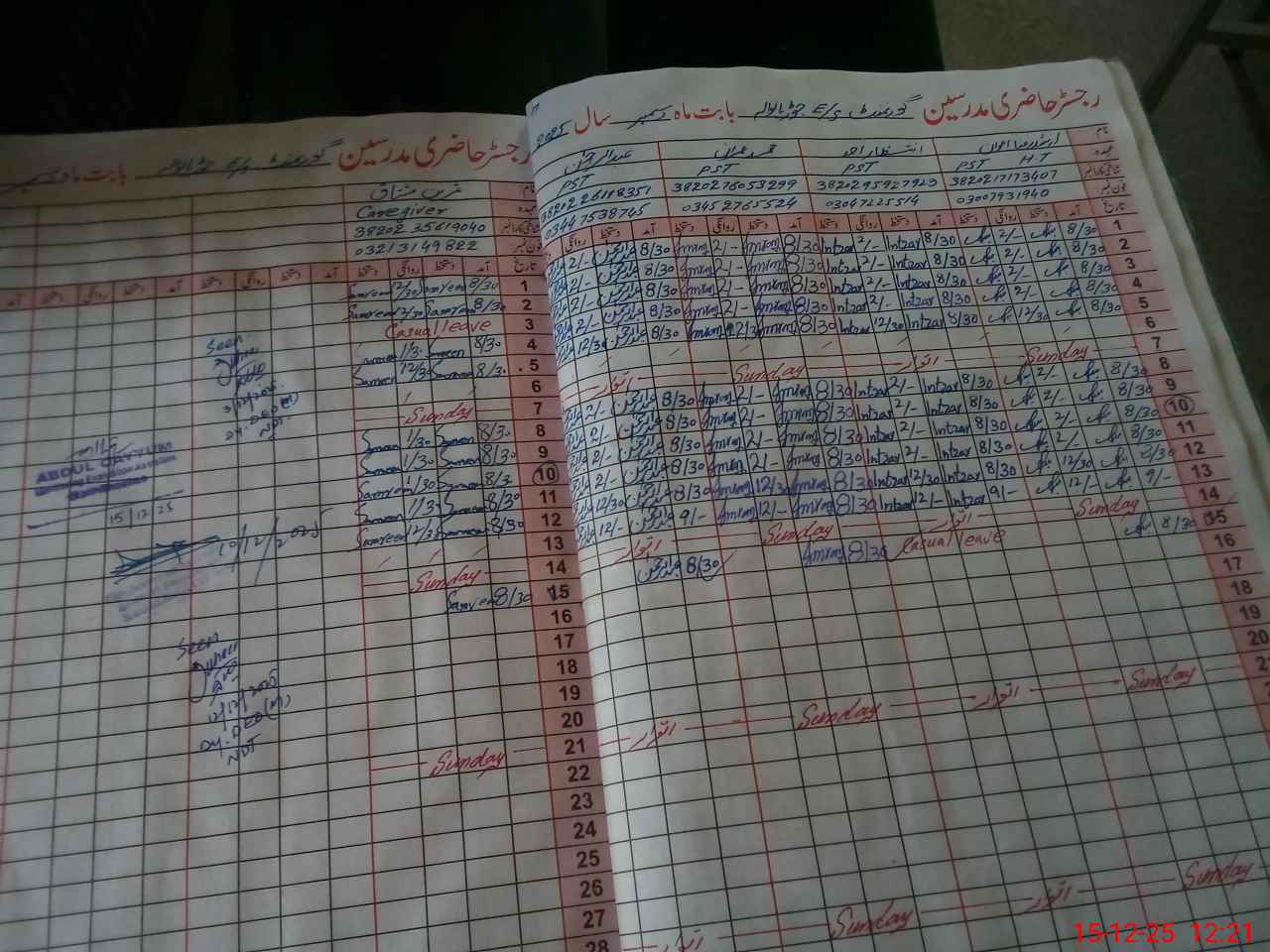 | CNIC | Full Name | Designation | R/C | Absence During Last Calender Month |