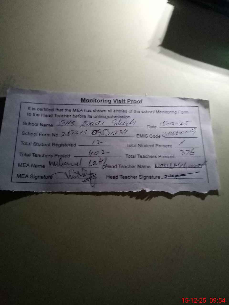 | EMIS Code: 31150009 | Name of School: GHS FIDAI SHAH | |||