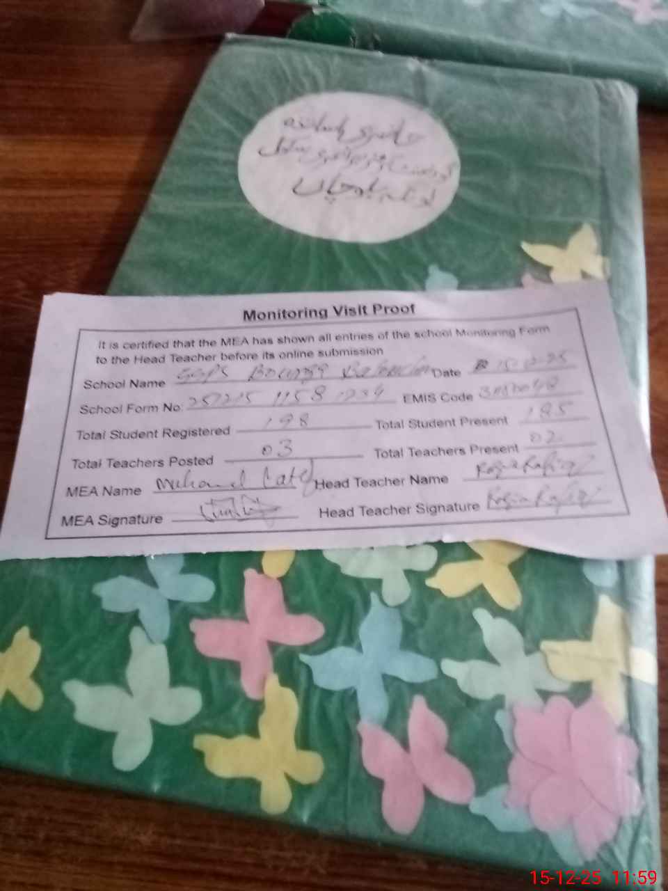 | EMIS Code: 31150048 | Name of School: GGPS BONGA BALOCHAAN | |||