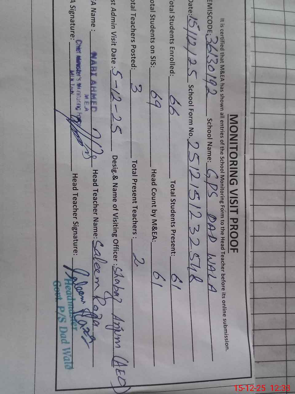| EMIS Code: 36130192 | Name of School: GPS DAD WALA BASTI DAD WALI MUTTI TAL | |||