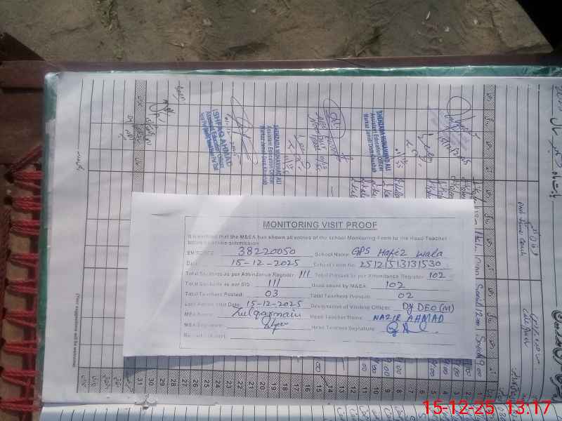 | EMIS Code: 38220050 | Name of School: GPS HAFIZ WALA | |||