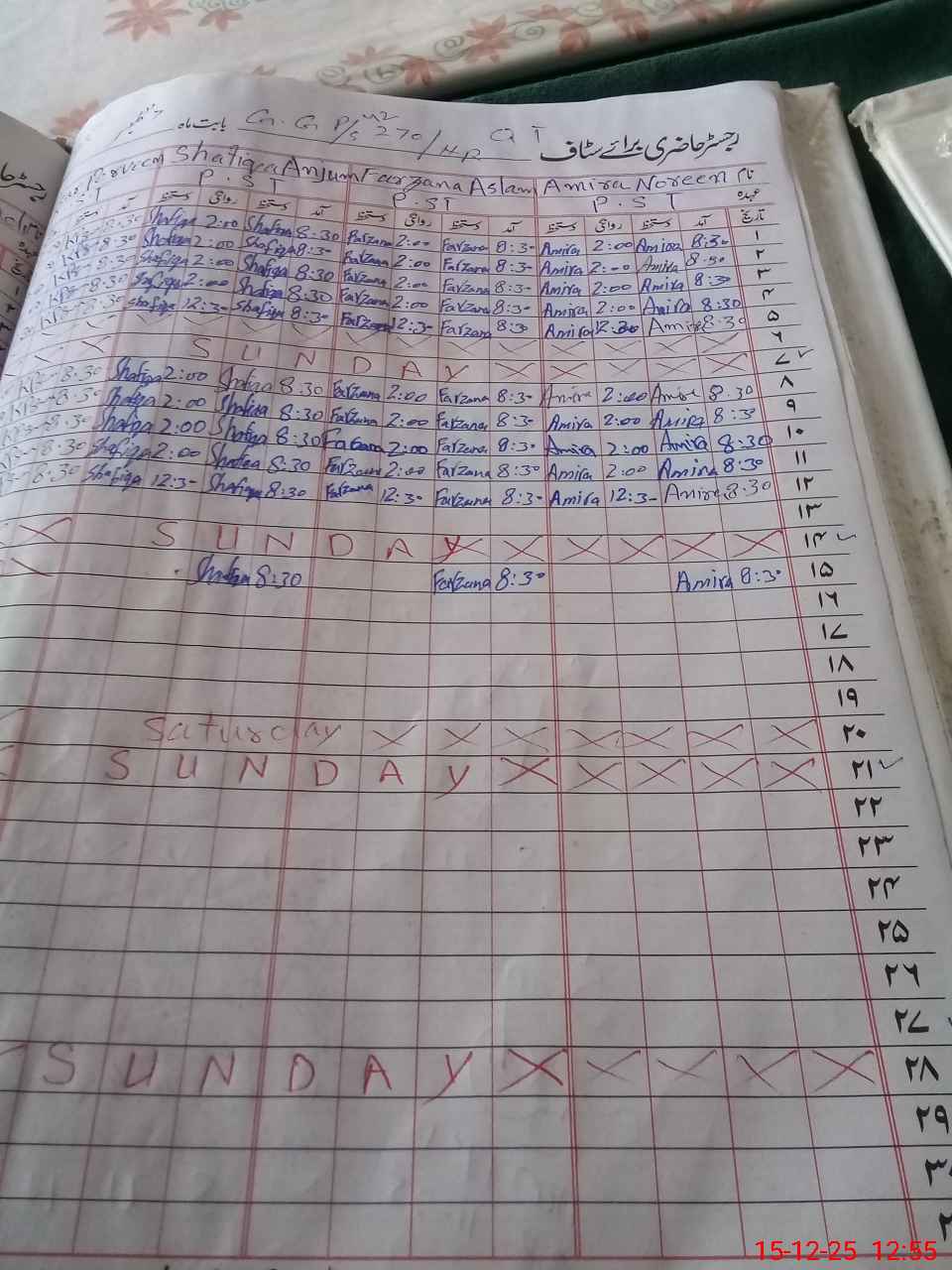 | CNIC | Full Name | Designation | R/C | Absence During Last Calender Month |